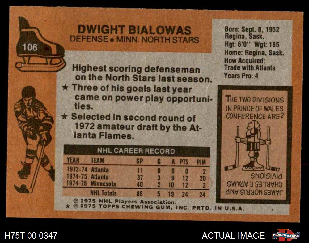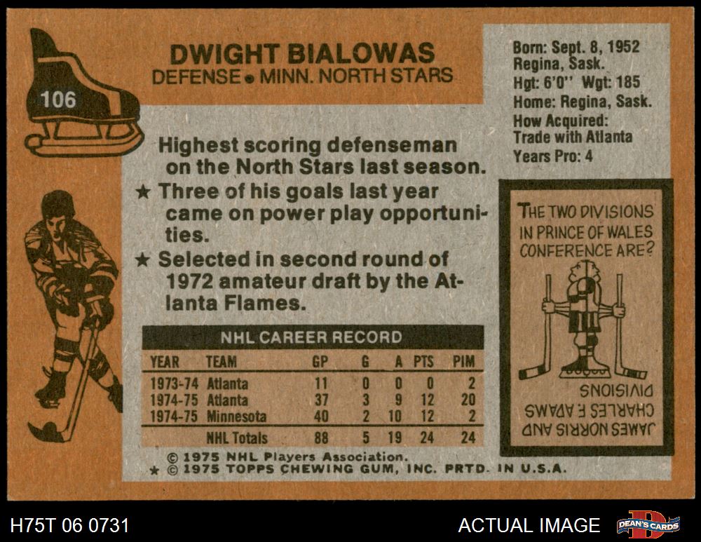 1975 Topps #106 Dwight Bialowas 7.5 - NM+