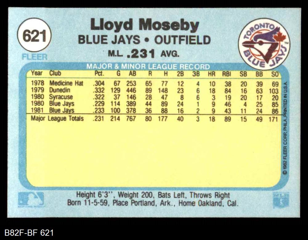 1982 Fleer #621 Lloyd Moseby 8 - NM/MT