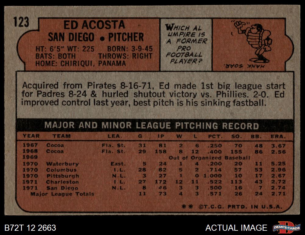 1972 Topps #123 Ed Acosta 3 - VG