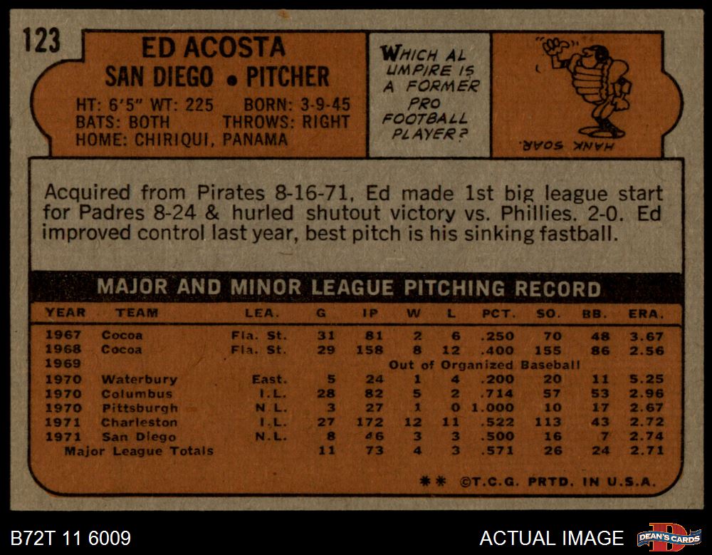 1972 Topps #123 Ed Acosta 4 - VG/EX