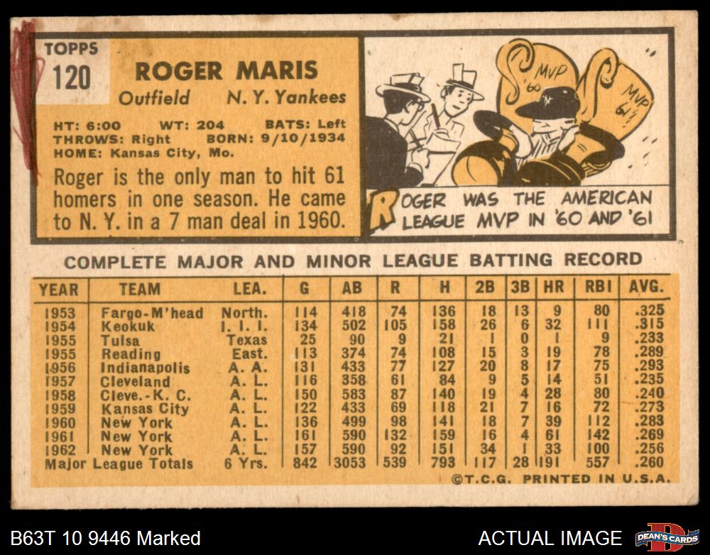 1963 Topps #120 Roger Maris 1.5 - FAIR