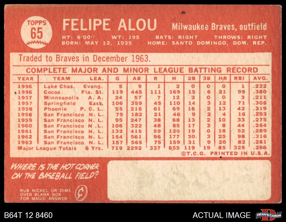 1964 Topps #65 Felipe Alou