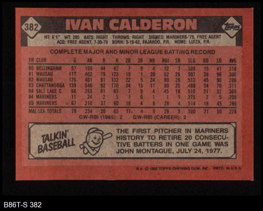 1986 Topps Baseball Cards (4,656 available)1986 Topps Mariners (257 available)