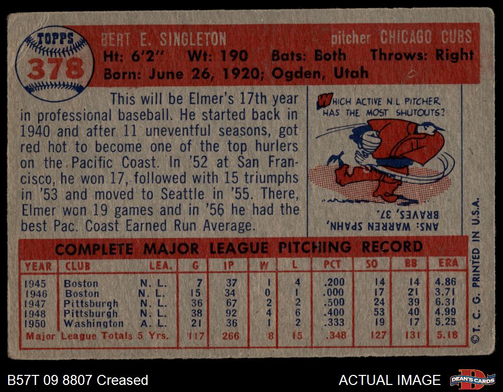 1957 Topps #378 Elmer Singleton 1.5 - FAIR