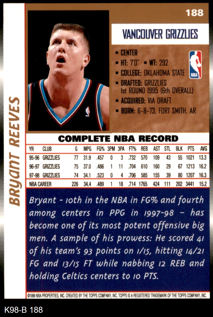 1998 Topps #188 Bryant Reeves 8 - NM/MT