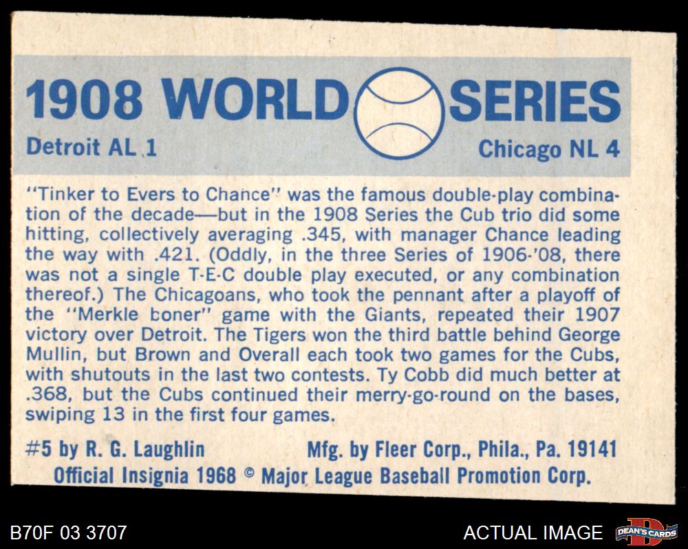 1970 Fleer World Series #5 - Joe Tinker / Johnny Evers 1908 Cubs vs. Tigers 2 - GOOD