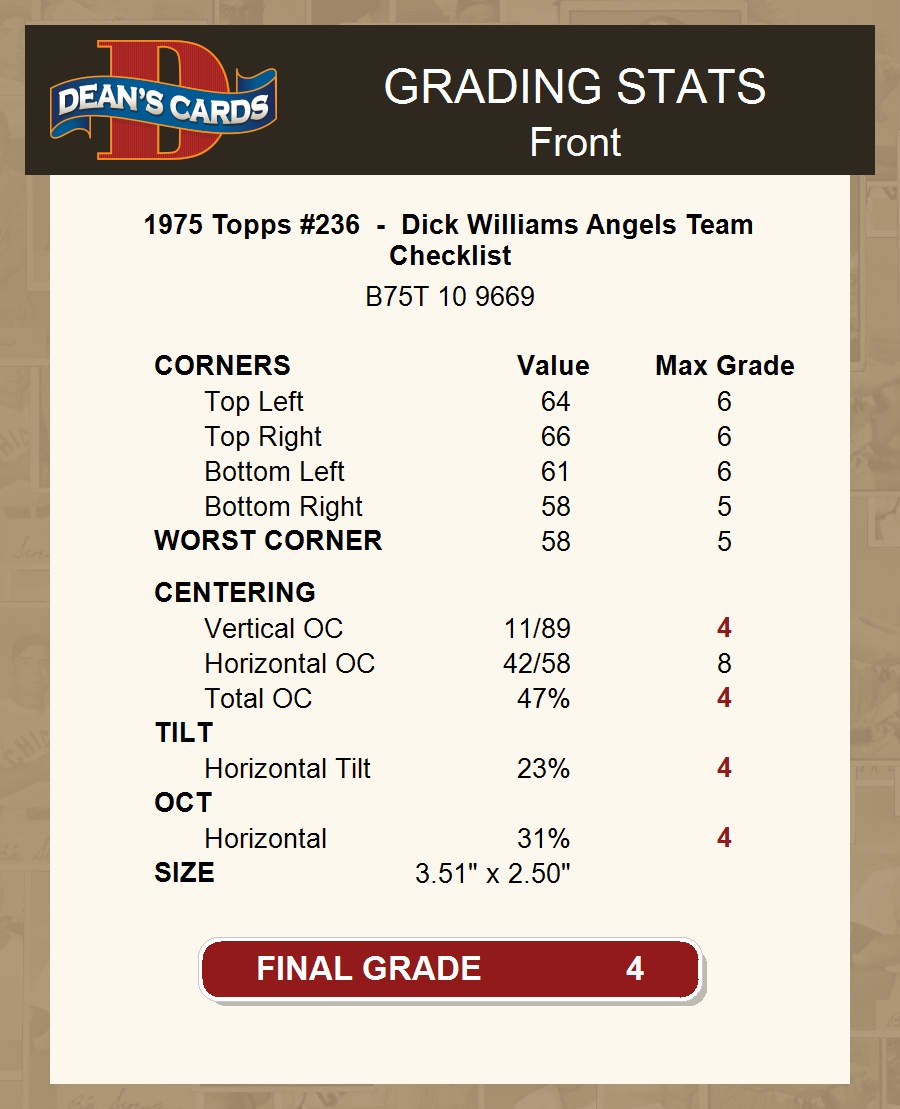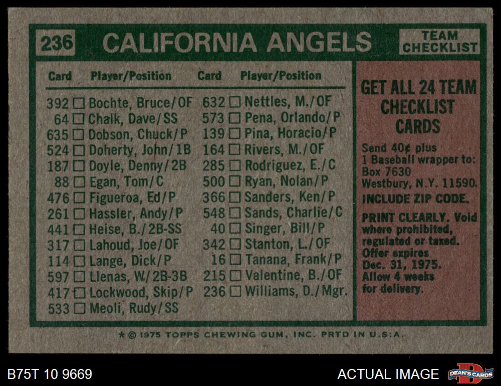 1975 Topps #236 - Dick Williams Angels Team Checklist 4 - VG/EX