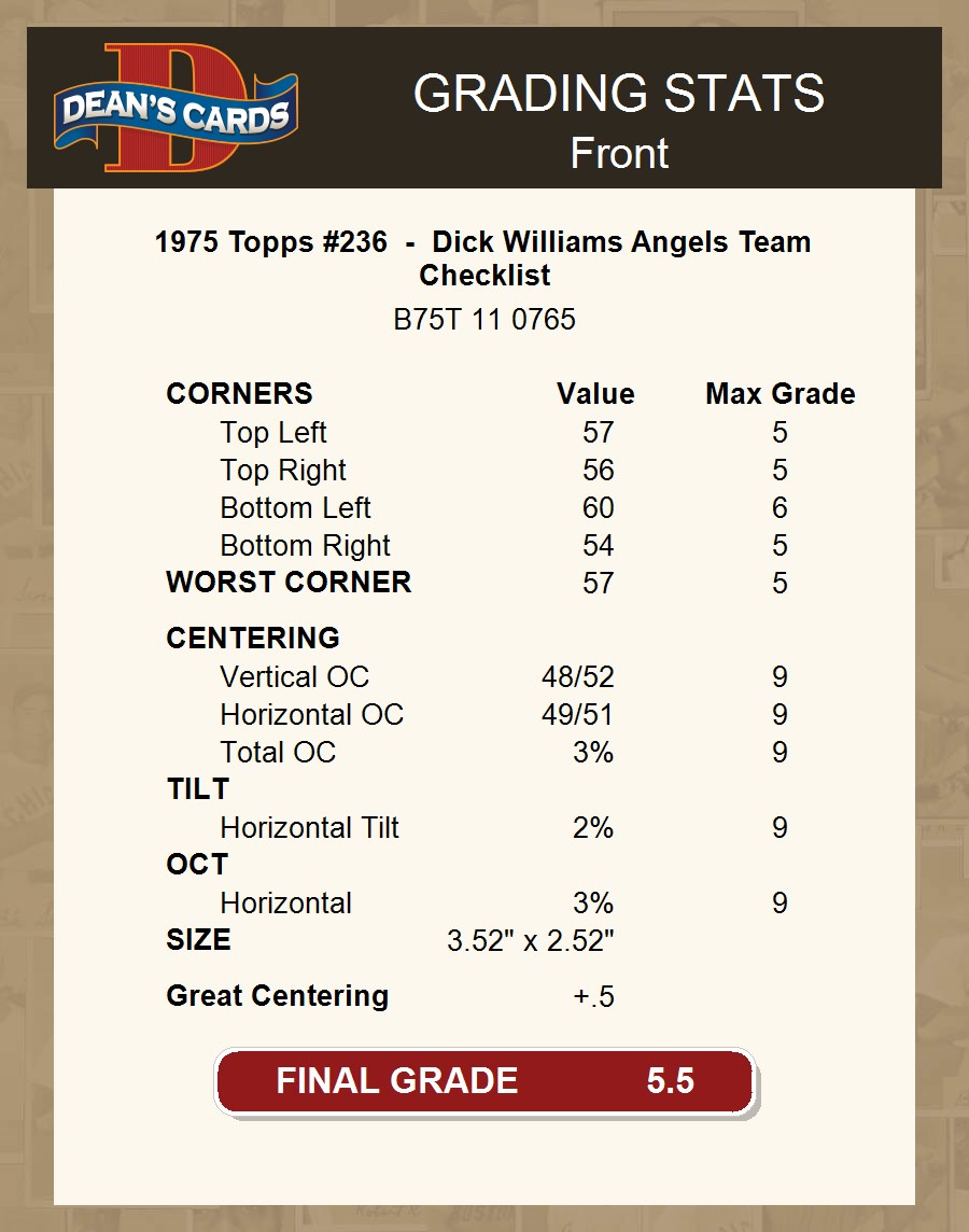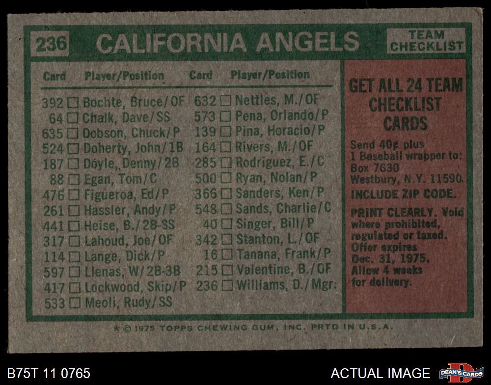 1975 Topps #236 - Dick Williams Angels Team Checklist 5.5 - EX+