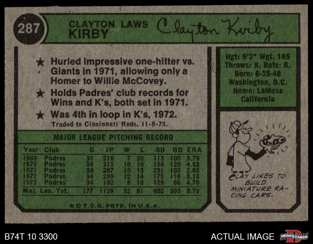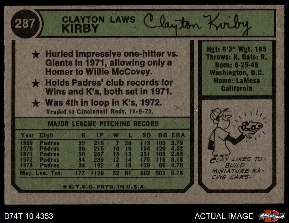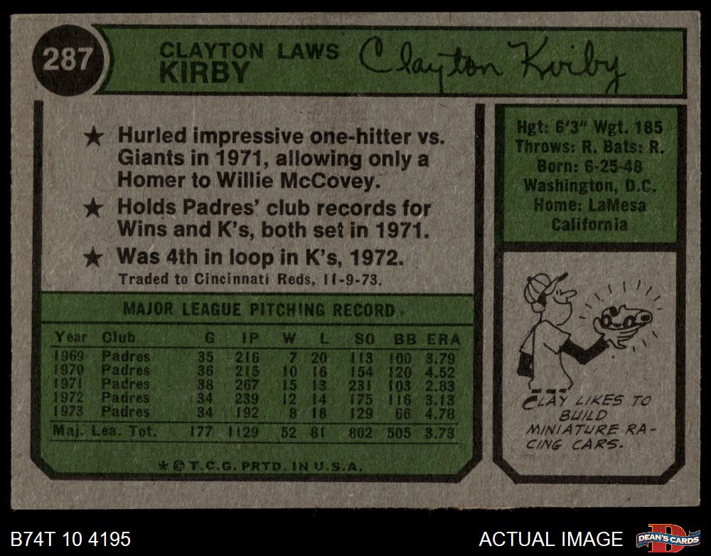 1974 Topps #287 Clay Kirby