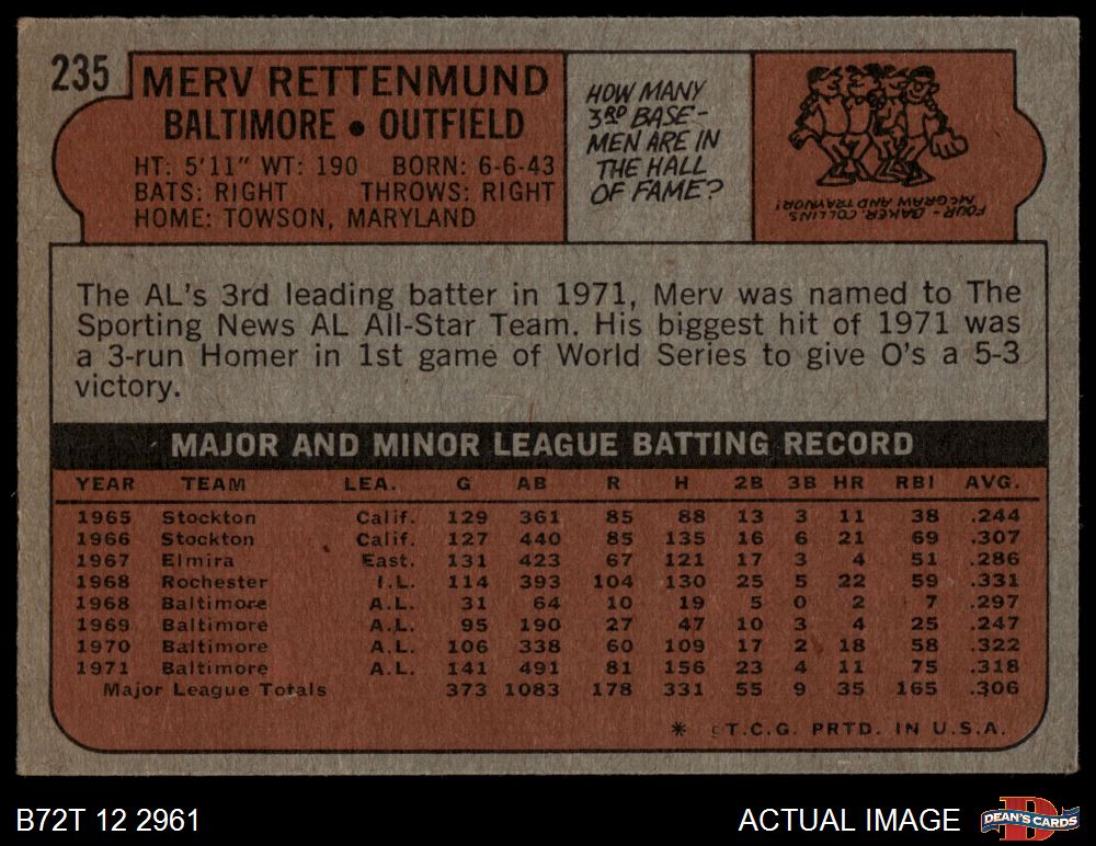 1972 Topps #235 Merv Rettenmund 3.5 - VG+