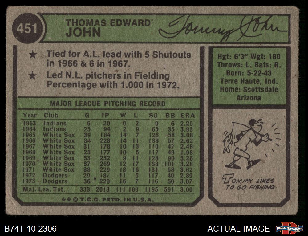 1974 Topps #451 Tommy John