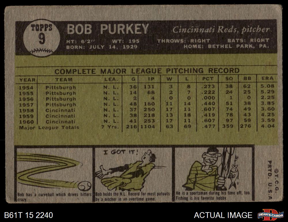 1961 Topps #9 Bob Purkey 1.5 - FAIR