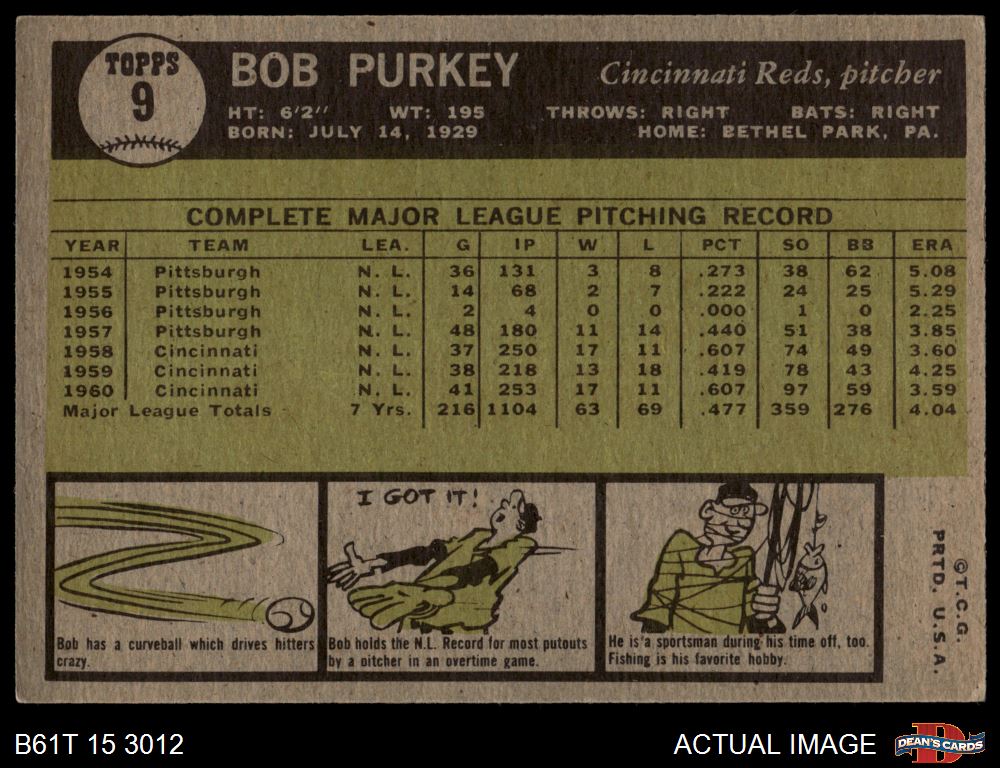 1961 Topps #9 Bob Purkey 4.5 - VG/EX+