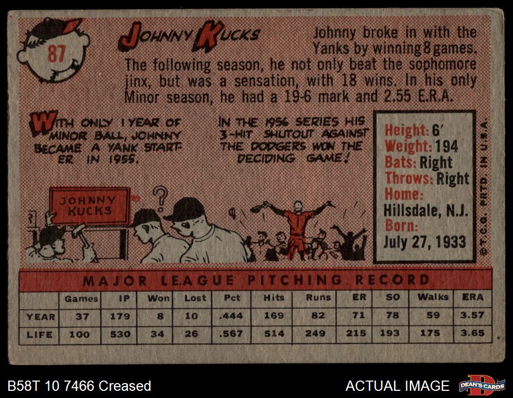 1958 Topps #87 Johnny Kucks 2 - GOOD