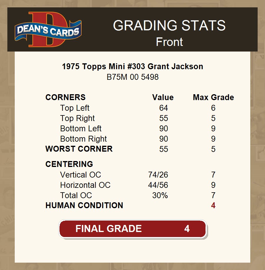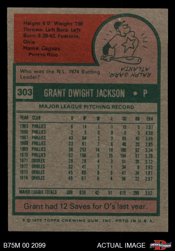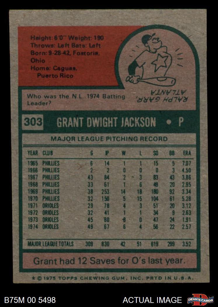 1975 Topps Mini #303 Grant Jackson 4 - VG/EX