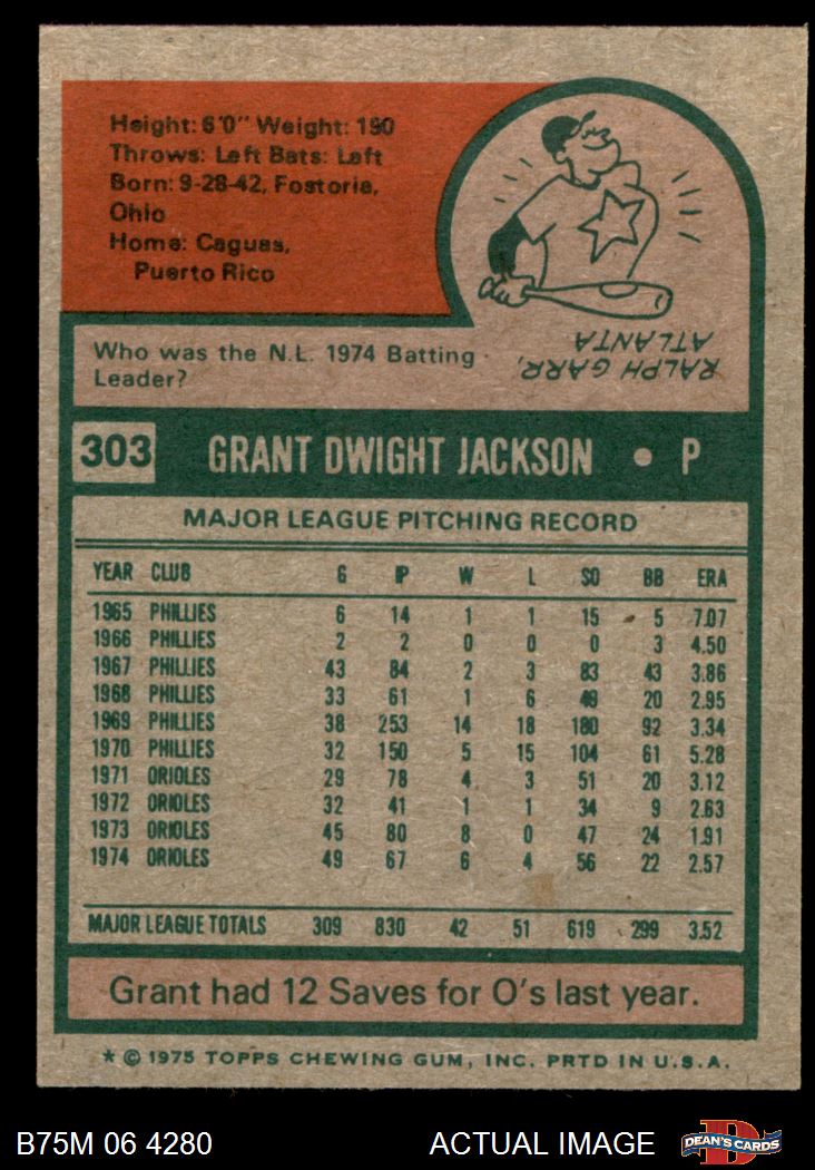 1975 Topps Mini #303 Grant Jackson 7 - NM