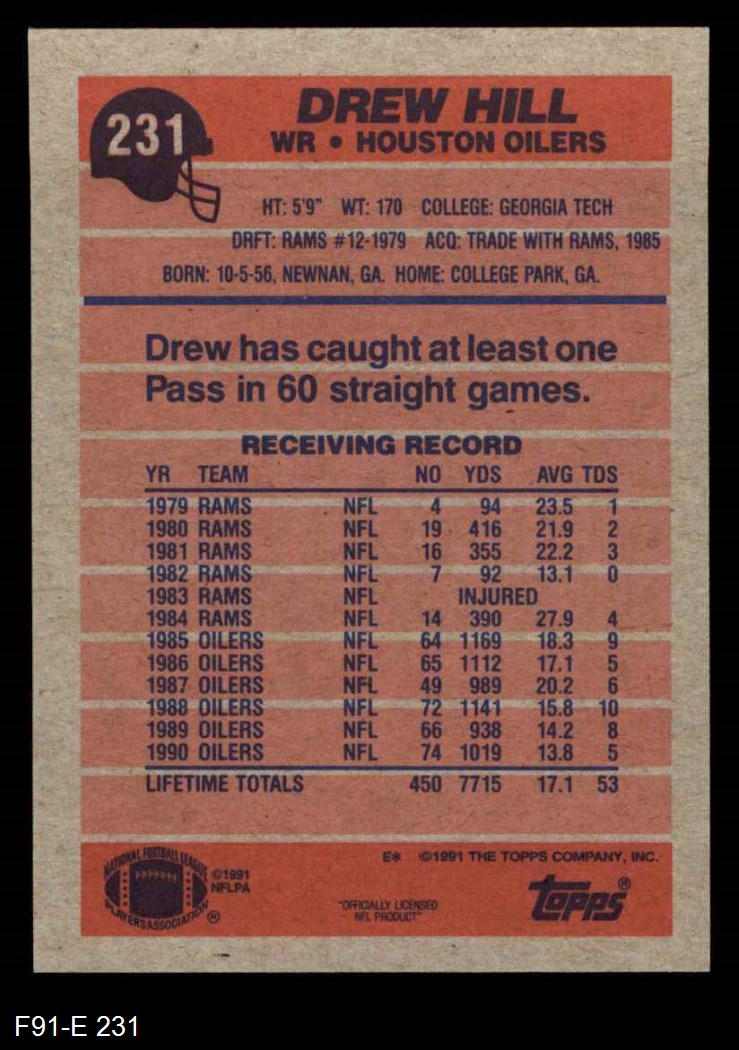 1991 Topps #231 Drew Hill 8 - NM/MT