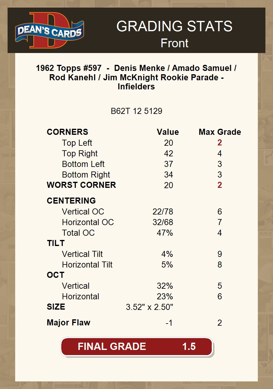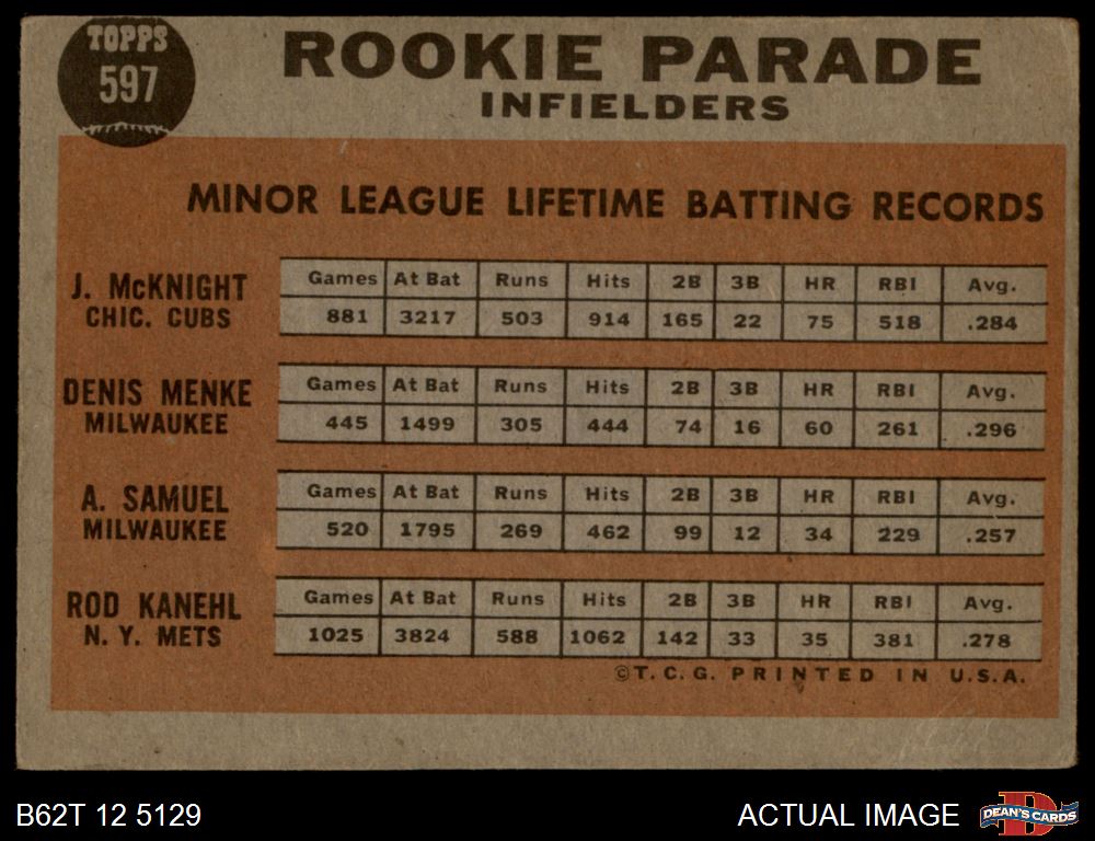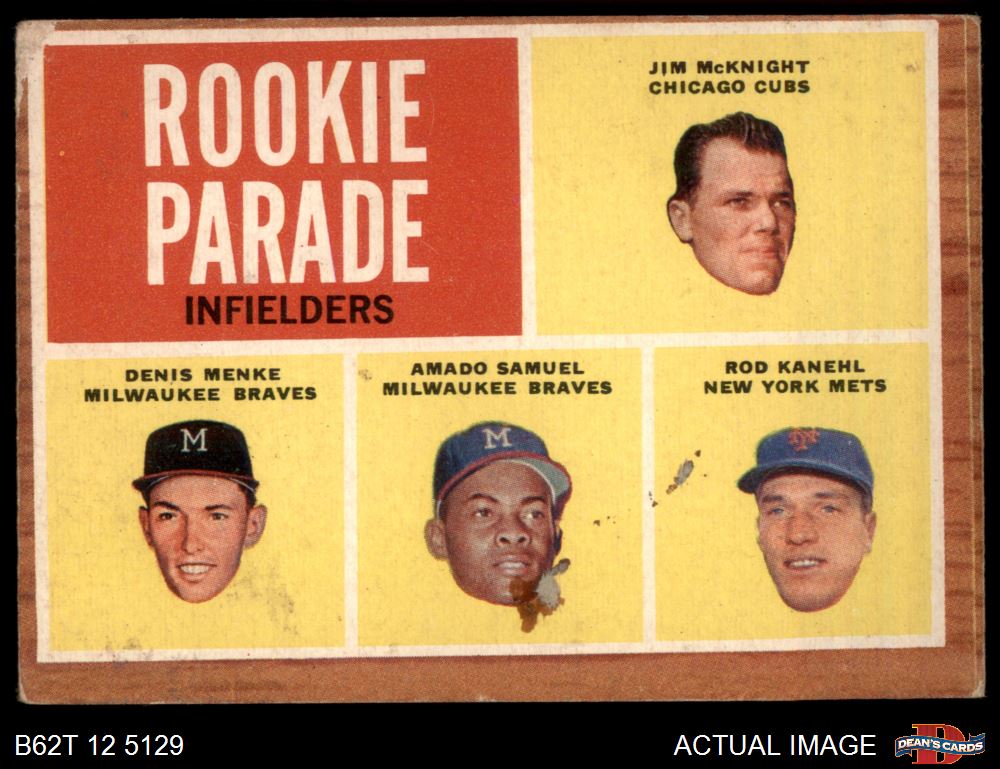 1962 Topps #597 - Denis Menke / Amado Samuel / Rod Kanehl / Jim McKnight Rookie Parade - Infielders 1.5 - FAIR