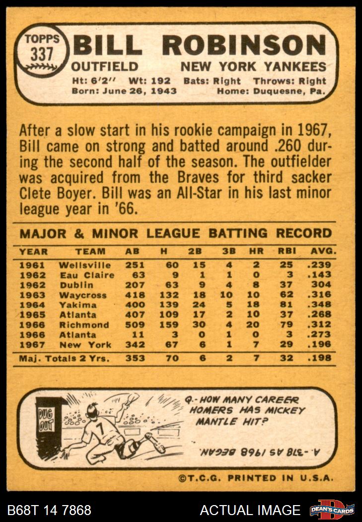 1968 Topps #337 A Bill Robinson