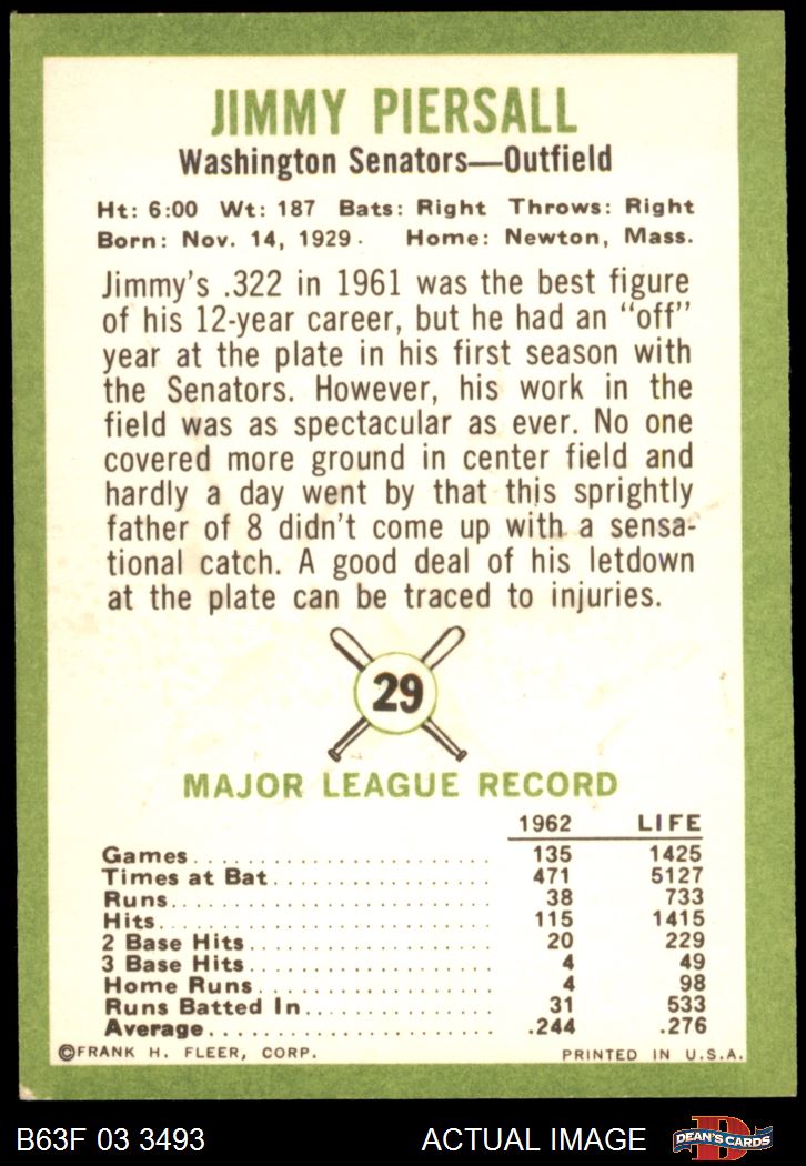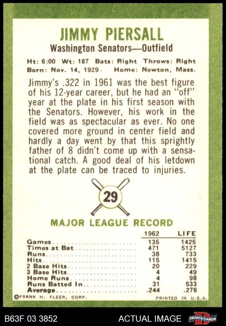 1963 Fleer #29 Jimmy Piersall 8 - NM/MT