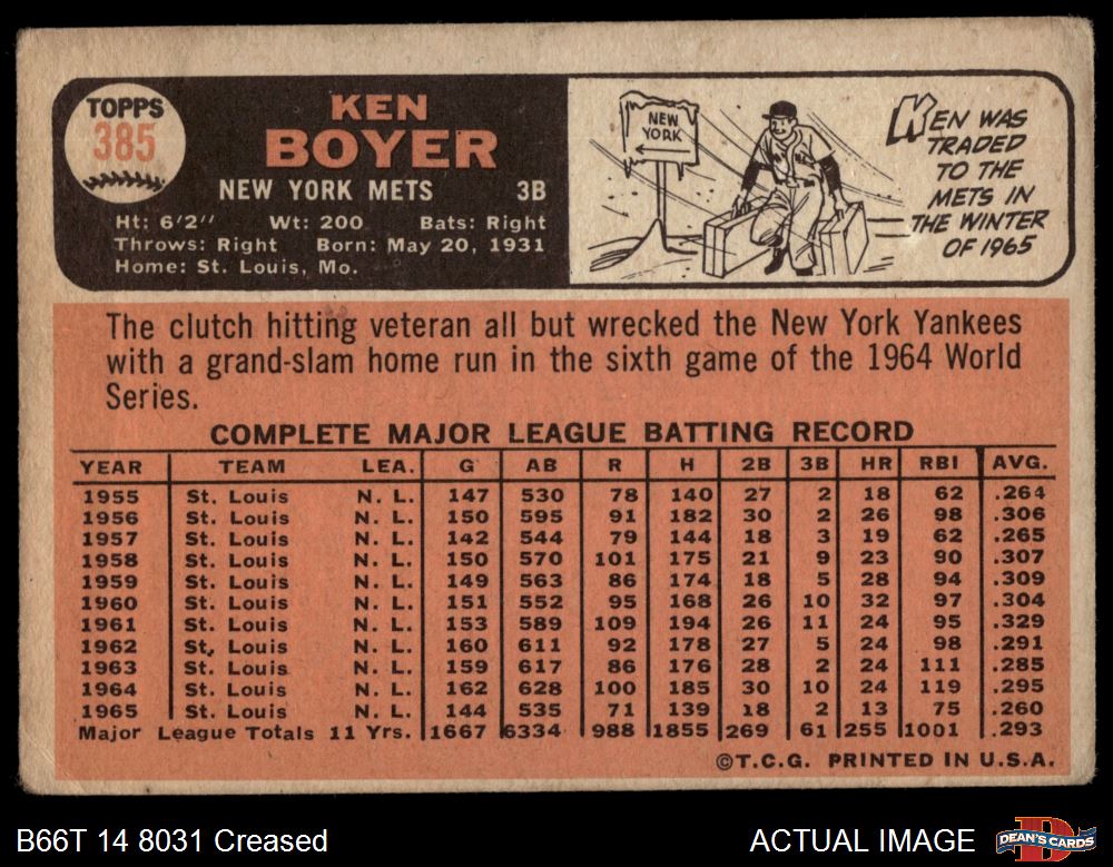 1966 Topps #385 Ken Boyer