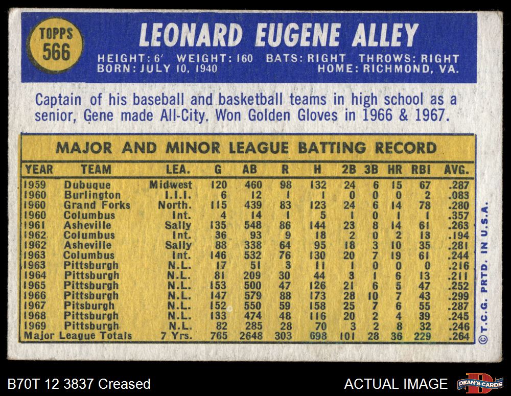 1970 Topps #566 Gene Alley 3 - VG