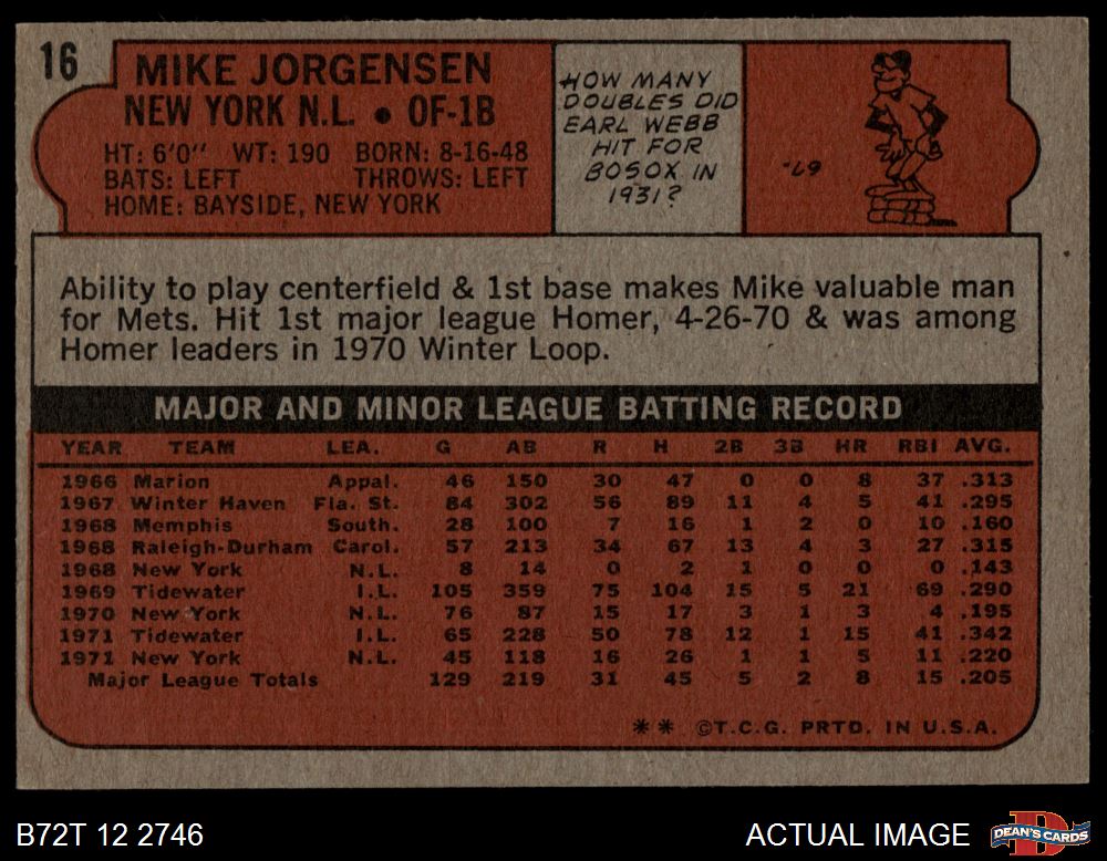 1972 Topps #16 Mike Jorgensen 4 - VG/EX
