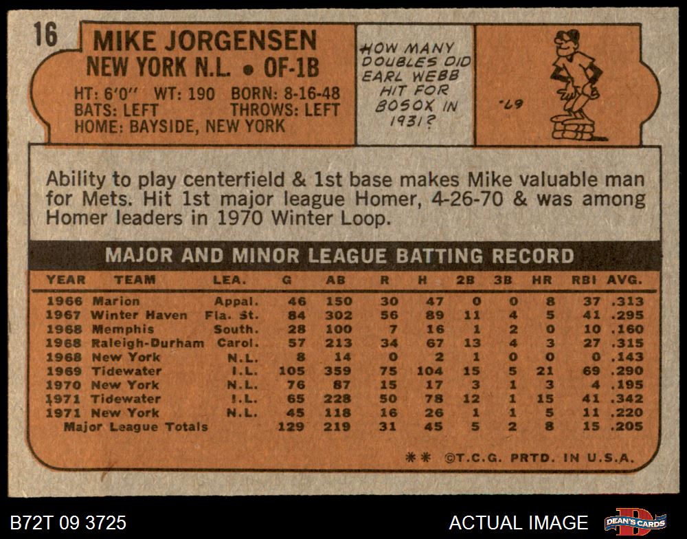 1972 Topps #16 Mike Jorgensen 6 - EX/MT