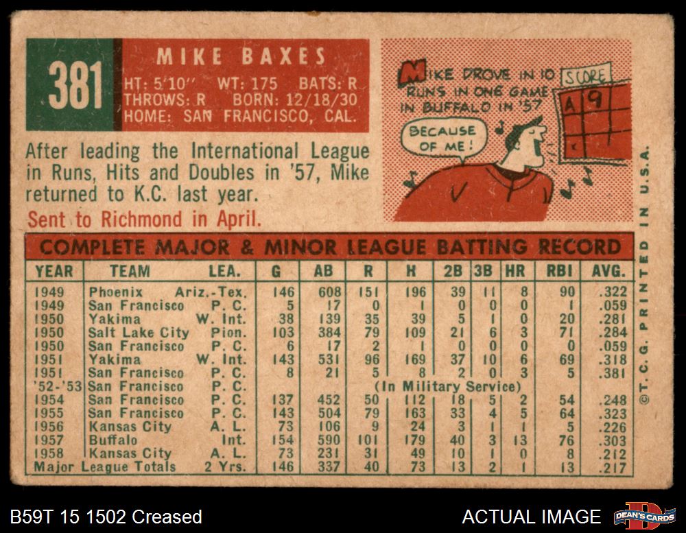 1959 Topps #381 Mike Baxes 1.5 - FAIR