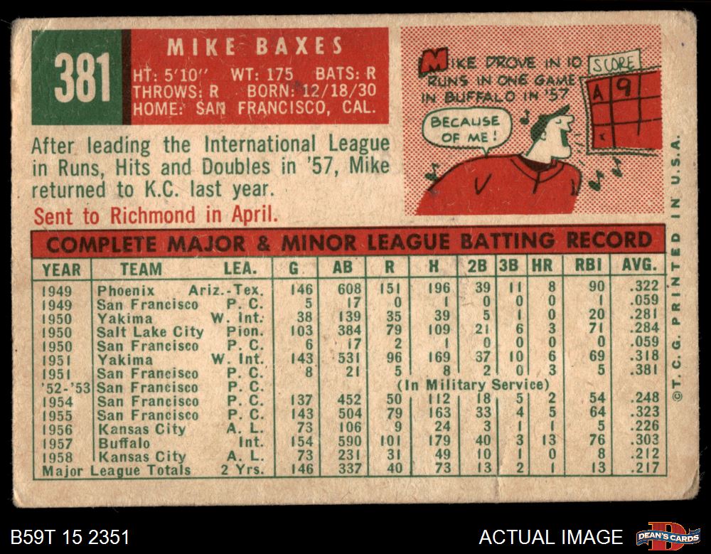 1959 Topps #381 Mike Baxes