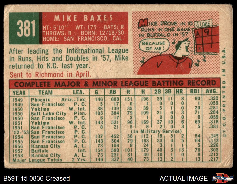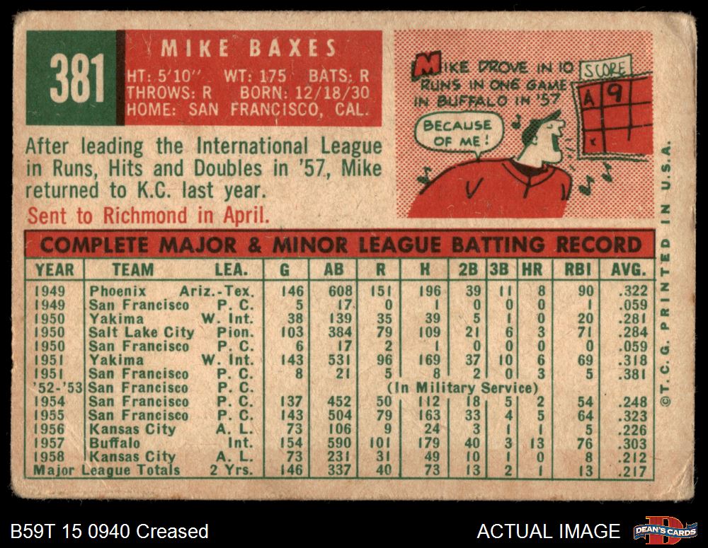 1959 Topps #381 Mike Baxes 2 - GOOD