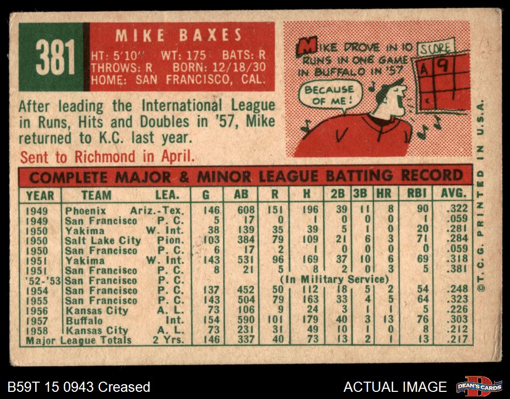 1959 Topps #381 Mike Baxes 2.5 - GD+