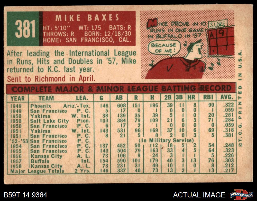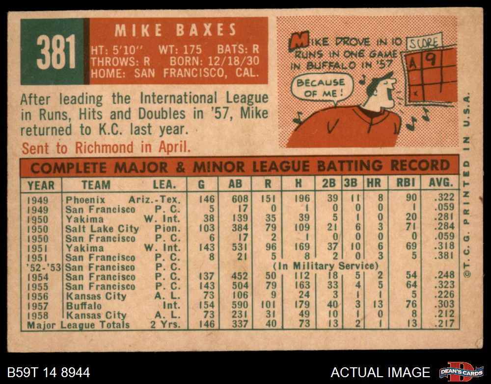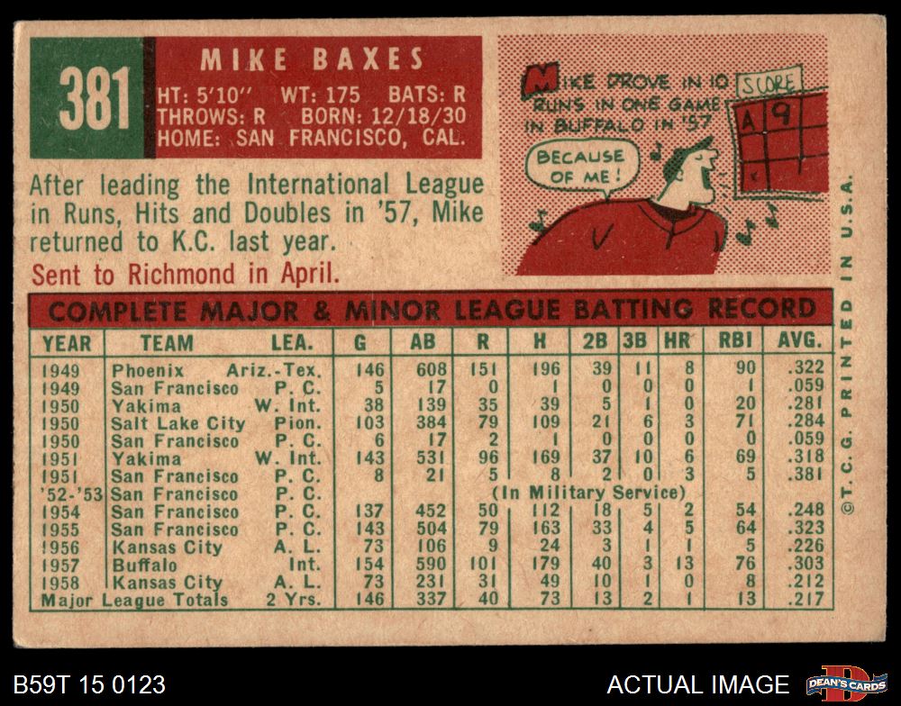 1959 Topps #381 Mike Baxes 4 - VG/EX