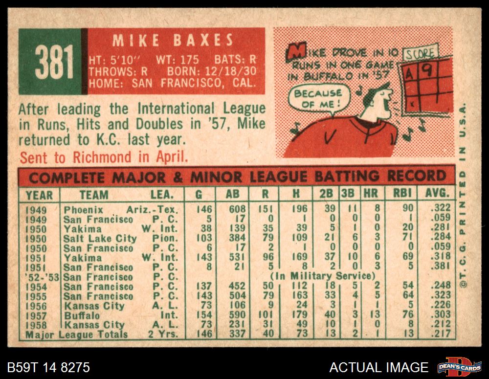 1959 Topps #381 Mike Baxes 5 - EX