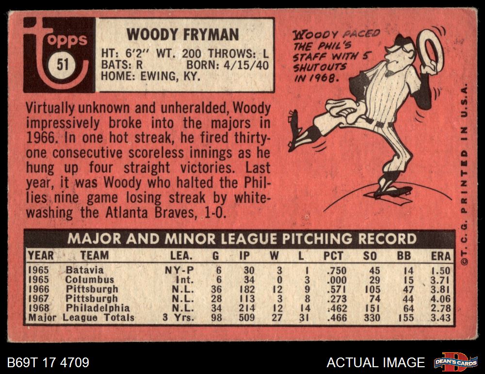 1969 Topps #51 Woody Fryman 2 - GOOD