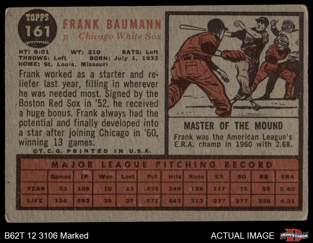 1962 Topps #161 GRN Frank Baumann 1 - POOR