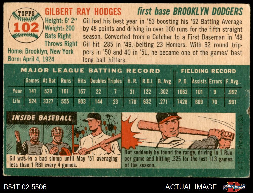 1954 Topps #102 Gil Hodges 4 - VG/EX