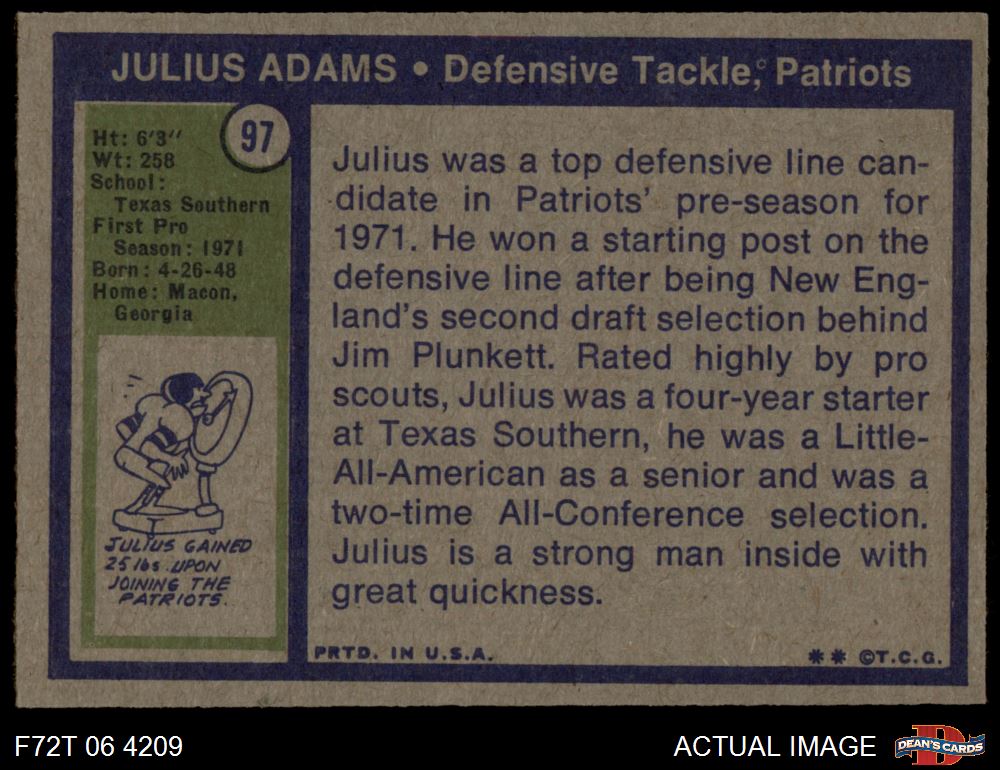 1972 Topps #97 Julius Adams 4 - VG/EX