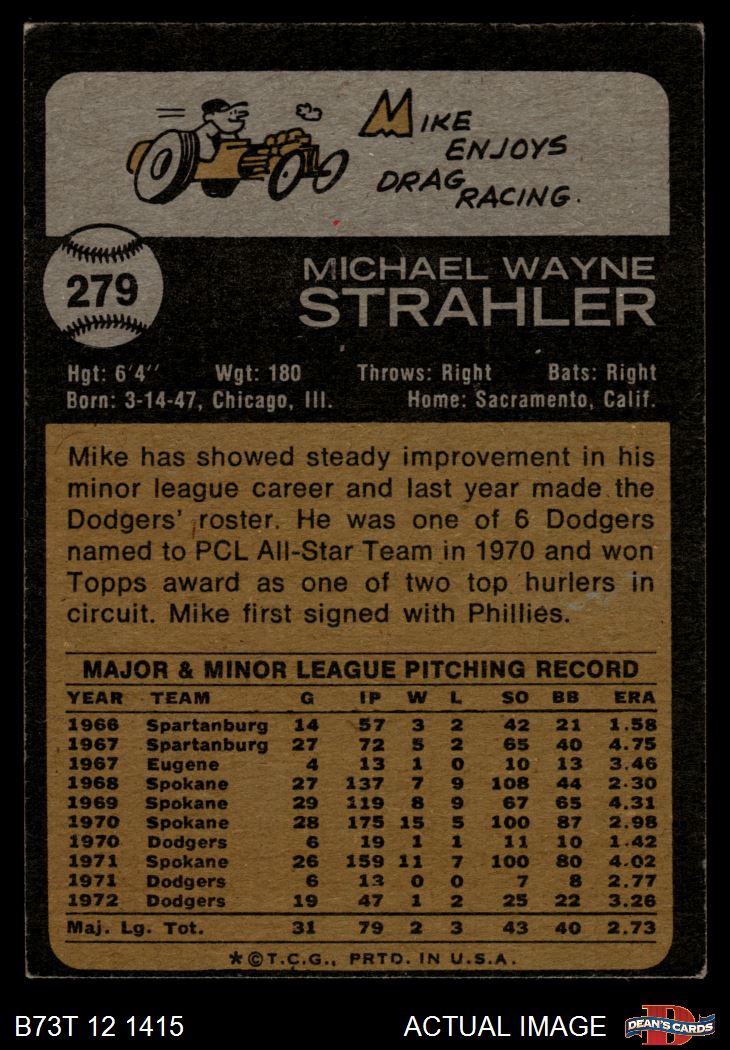 1973 Topps #279 Mike Strahler 4 - VG/EX