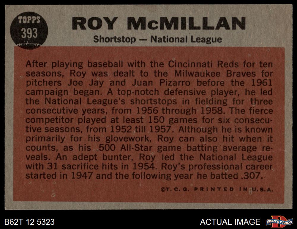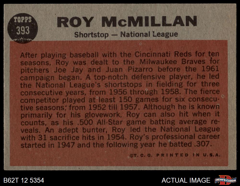 1962 Topps #393 - Roy McMillan All-Star 3 - VG