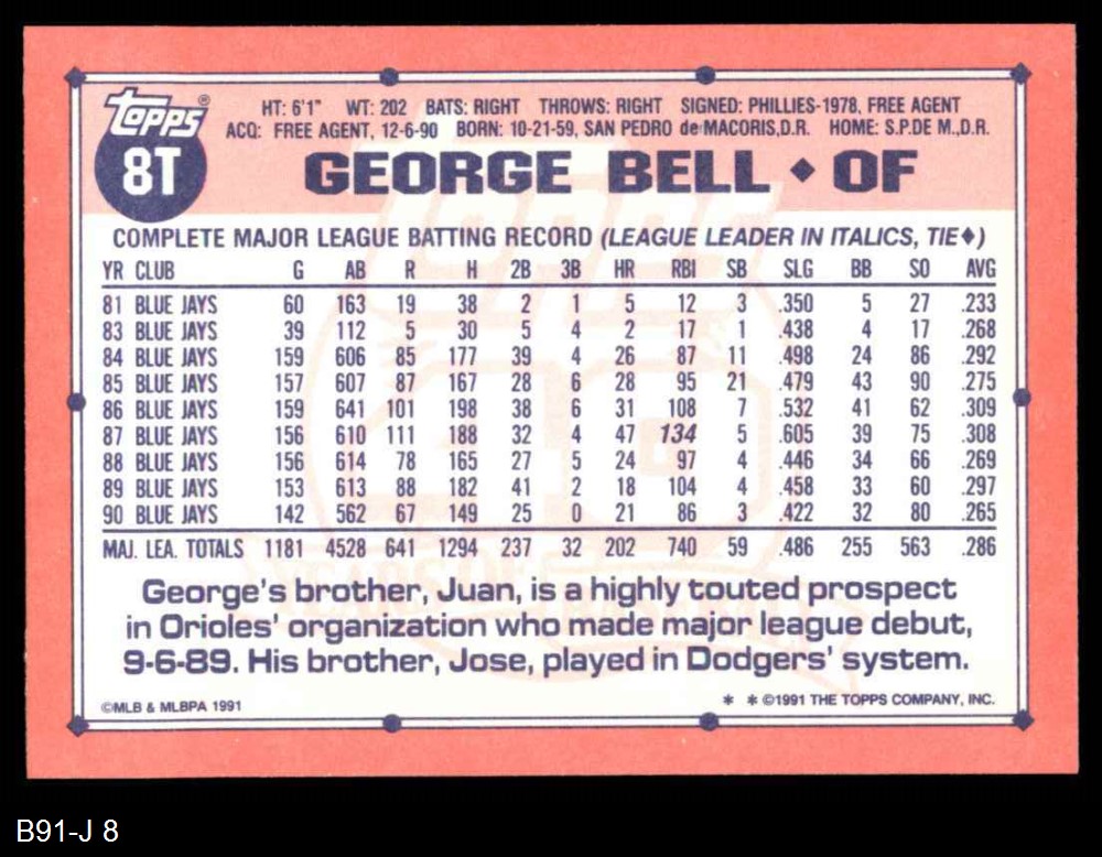 1991 Topps Traded #8 T George Bell