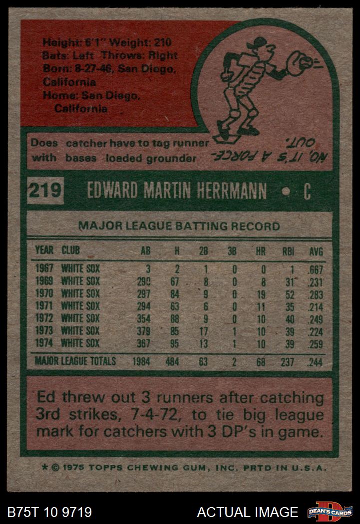 1975 Topps #219 Ed Herrmann 5.5 - EX+