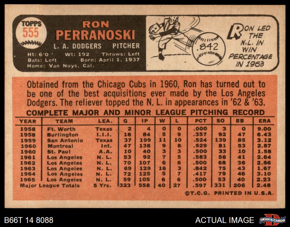 1966 Topps #555 Ron Perranoski 6 - EX/MT