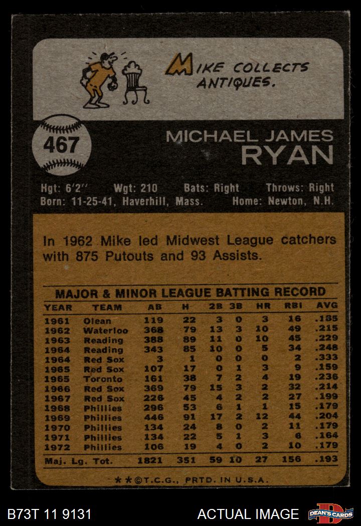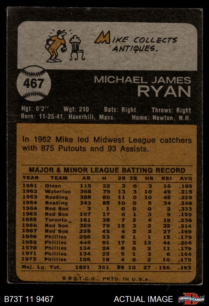 1973 Topps #467 Mike Ryan