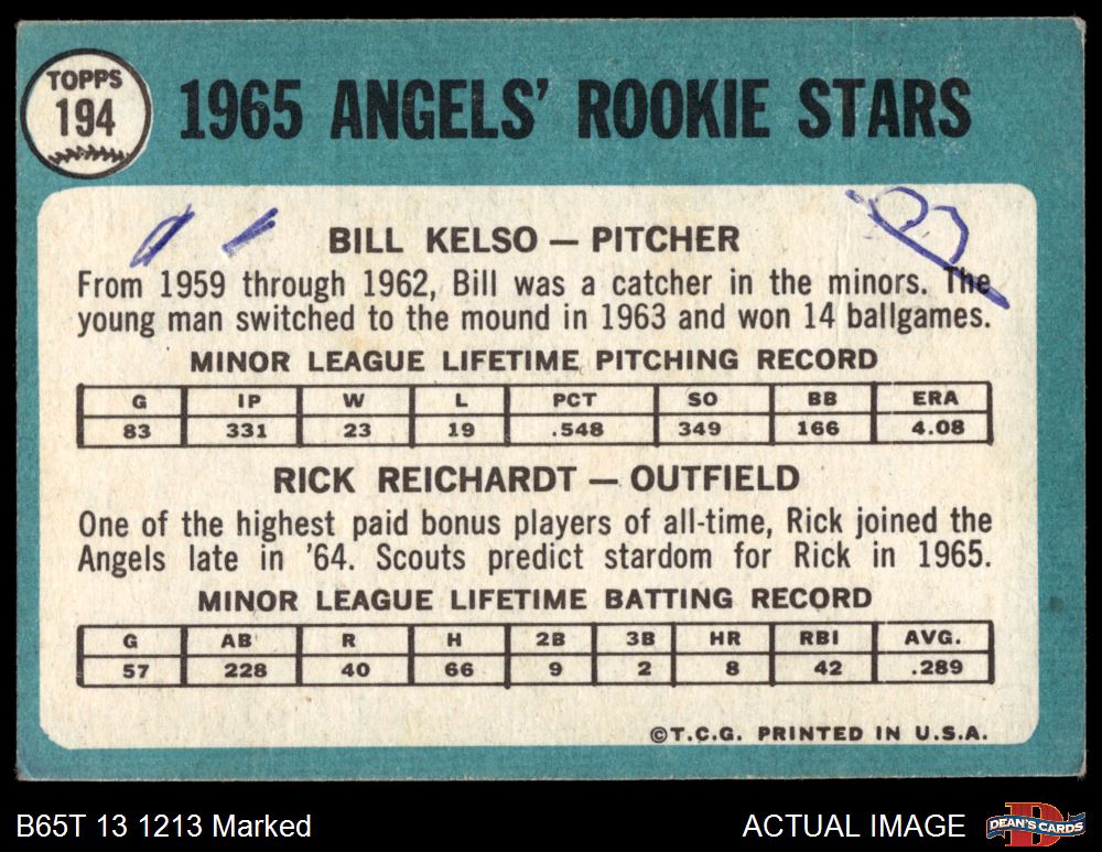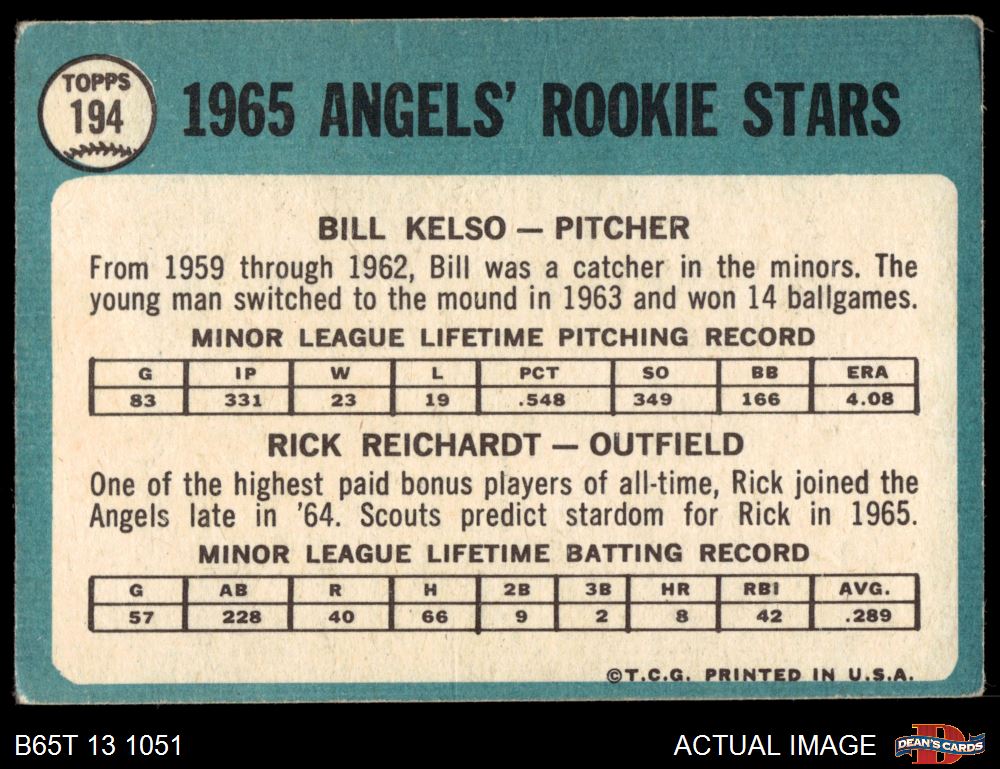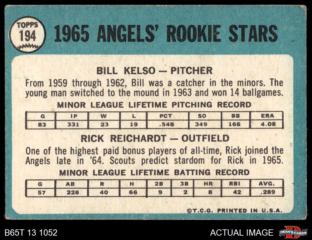 1965 Topps #194 - Rick Reichardt / Bill Kelso Angels Rookies 1.5 - FAIR
