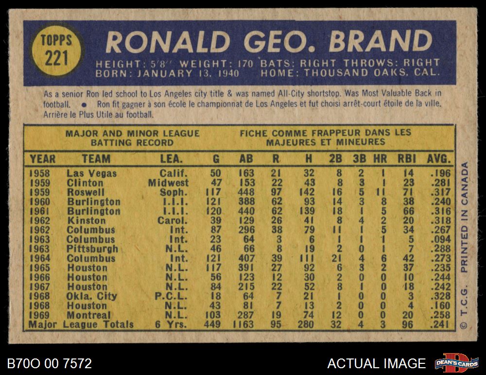 1970 O-Pee-Chee #221 Ron Brand