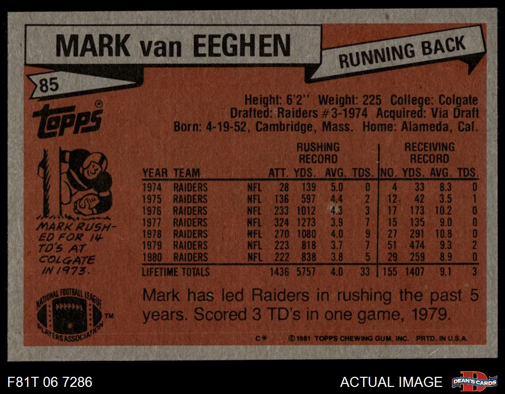 1981 Topps #85 Mark Van Eeghen 6 - EX/MT
