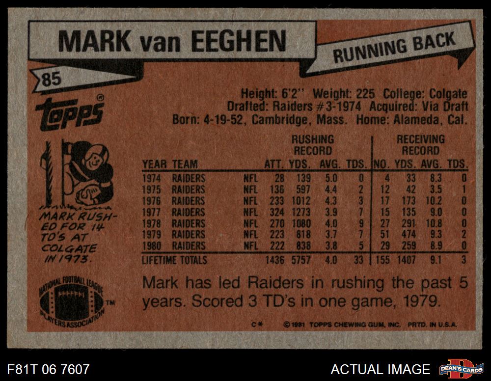 1981 Topps #85 Mark Van Eeghen 7 - NM