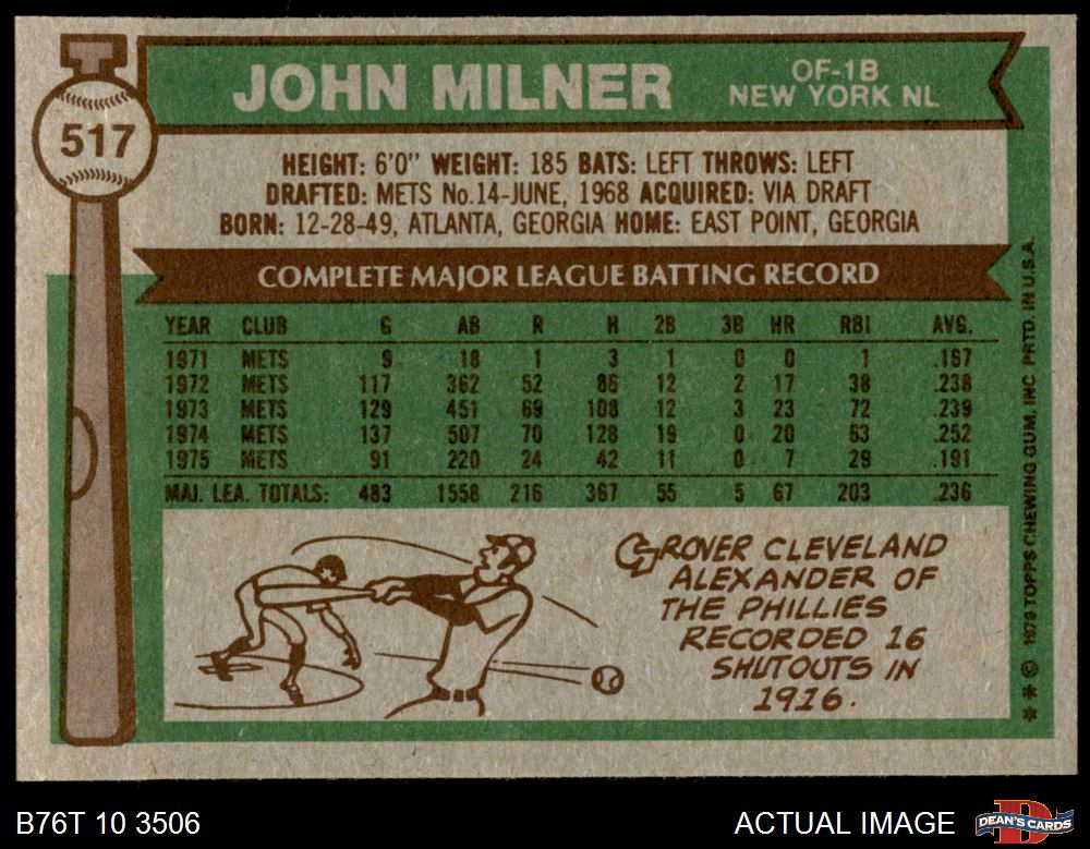 1976 Topps #517 John Milner 7 - NM