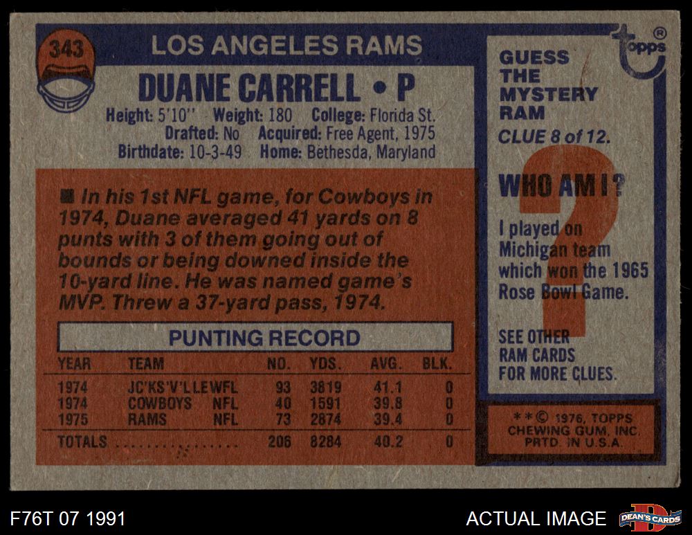 1976 Topps Football Cards (7,464 available)1976 Topps Rams (246 available)